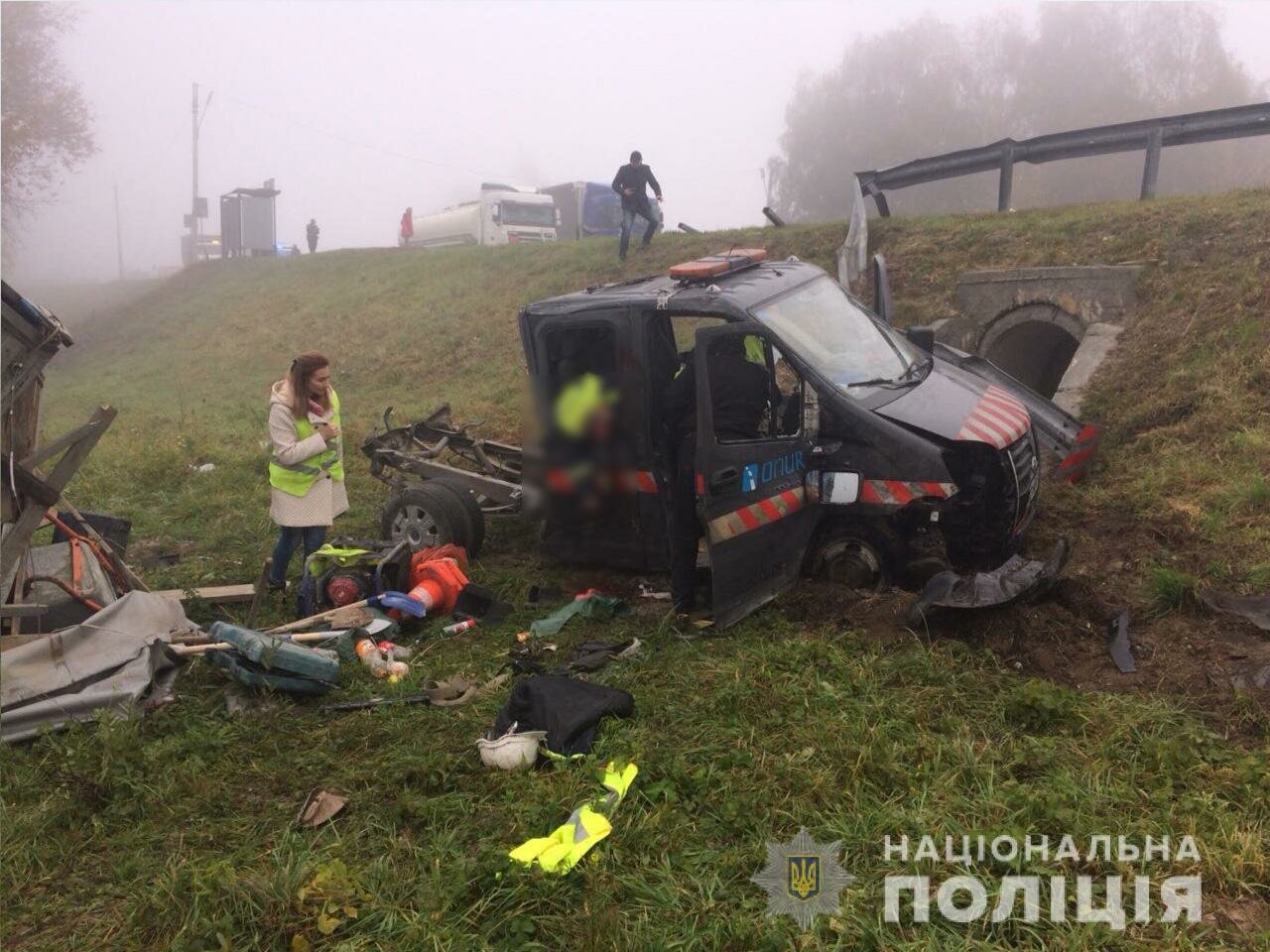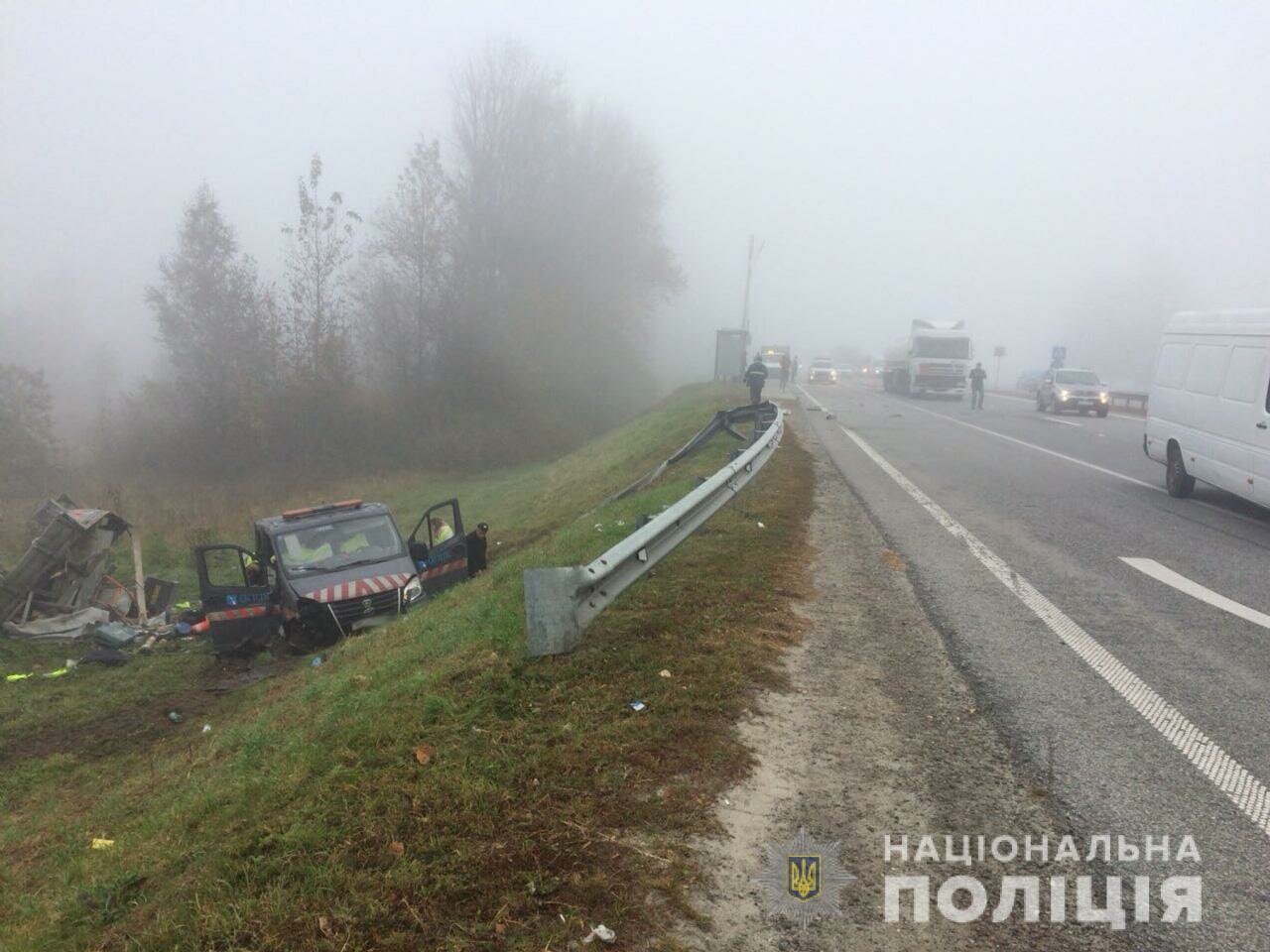 Автопоезд DAF и микроавтобус "ГАЗель" столкнулись на автодороге Киев - Чоп возле села Лубьяна во Львовской области.