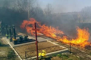 По предварительным данным, 23 апреля загорелся мусор в пяти разных местах на территории кладбища общей площадью 100 квадратных метров.
