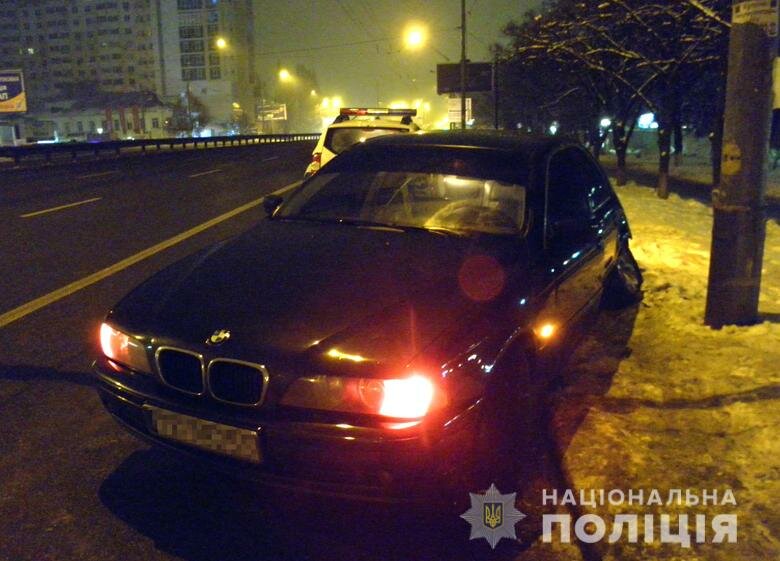 В Киеве подвыпившая женщина на угнанном BMW влетела в столб. Фото