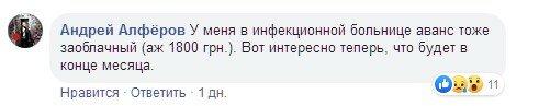 "У меня в инфекционной больнице аванс тоже заоблачный (аж 1 800 грн.). Вот интересно теперь, что будет в конце месяца", - подчеркнул он.