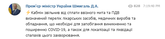 Украинское правительство приняло решение об отмене пошлины и НДС на определенный перечень лекарств и медицинского оборудования.