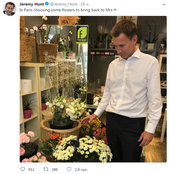 Позже он опуубликовал фотографию, как выбирает цветы для своей жены в Париже, возможно, пытаясь "загладить вину".
