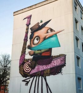 Первой в списке работа французских художников Адора и Сэмор. Мурал является частью их долгосрочного художественного проекта.