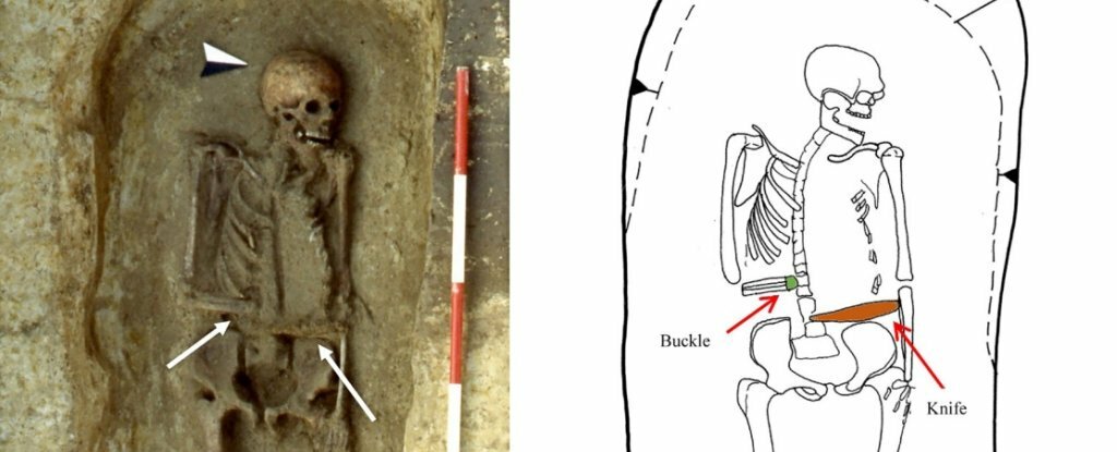 На скелете, рядом с ампутированной рукой, лежало лезвие. Ученые предполагают, что это деталь протеза. Это не может быть оружием, так как у других найденных в некрополе скелетов оружие лежало сбоку от тела.