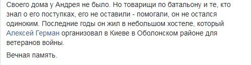 Журналист также сообщил, что у Иванова не было своего дома, и последние годы он жил в небольшом хостеле в Оболонском районе Киева.