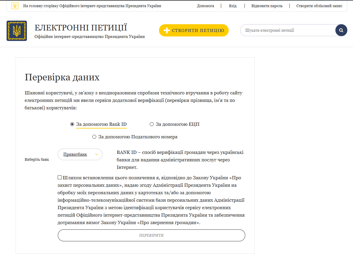 Петиция на сайте президента Украины в разделе "Электронные петиции" выглядит так: