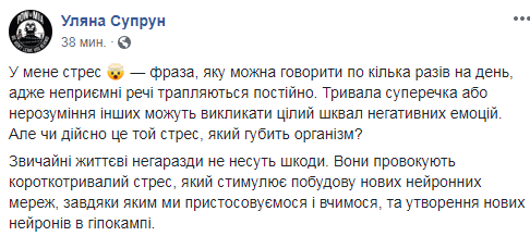 "Если Вы видите в своем окружении людей в хроническом стрессе – поддержите их", - написала Супрун.
