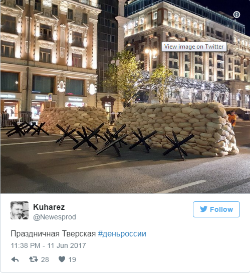 В то же время, в сети появились фото баррикад в центре Москвы.