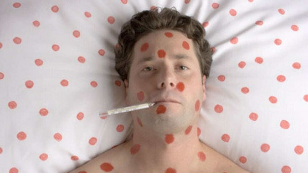 Первые признаки болезни похожи на обычную простуду - насморк, температура, кашель. Примерно через неделю появляется сыпь - сначала на голове, потом на верхней и нижней частях туловища.