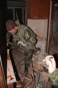 По его словам, зафиксировано около двадцати выстрелов боевиков в сторону города и не менее шести попаданий снарядами танковой пушки по жилым зданиям и объектам инфраструктуры города.