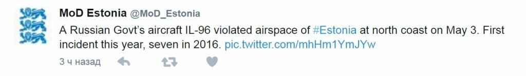 В среду, 3 мая, самолет Российской Федерации Ил-96 нарушил воздушное пространство Эстонии.