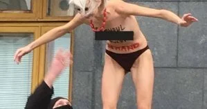 Обнаженная девушка организовала акцию протеста возле здания Офиса президента в Киеве.